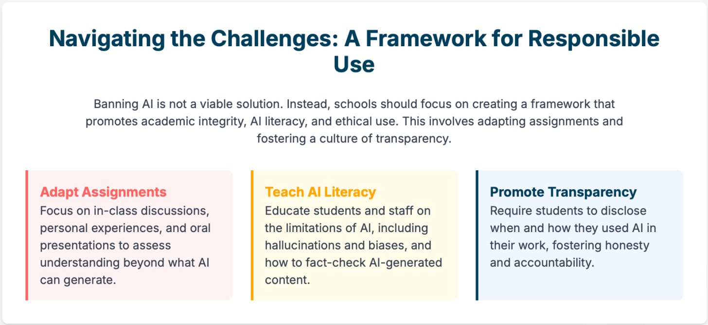 The Solution is Adaptation, Not Prohibition: Instead of banning AI, schools should:
